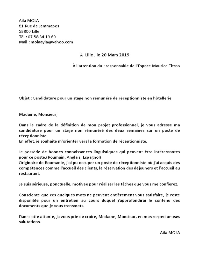 Créatif lettre motivation stage hotellerie luxe lettre de.