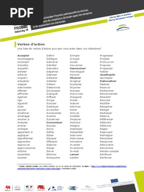 Les Verbes Daction. Indiquez si les verbes sont des verbes d'action ou d'état. Les verbes d'action peuvent réellement contribuer à la réussite de votre candidature.